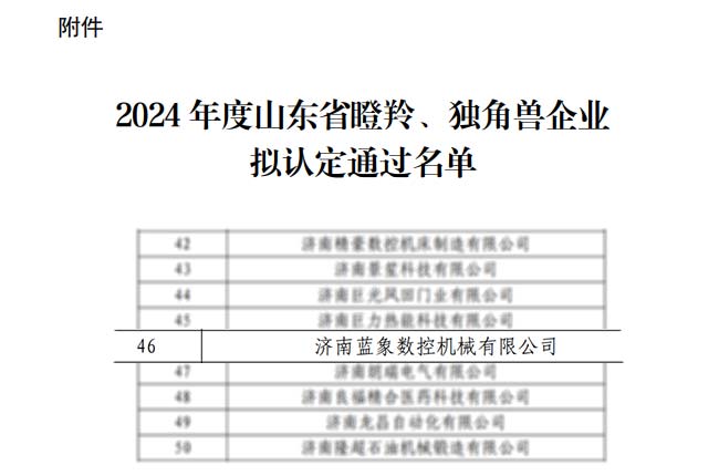 近日,省工業(yè)和信息化廳公示了《2024年度山東省瞪羚企業(yè)擬認定通過名單》,藍象數(shù)控成功入選。