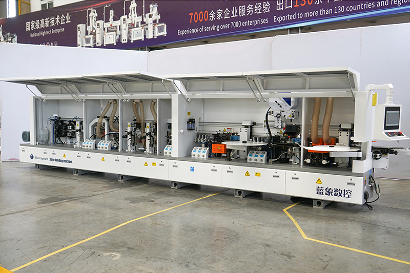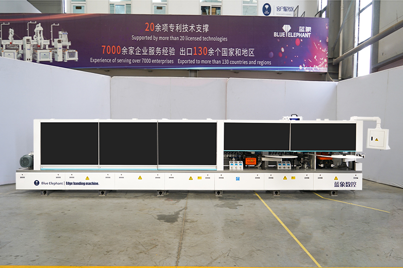 E-70JDS 全自動封邊機可完成涂膠、壓貼、齊頭、粗修、精修、刮邊、拋光等功能,其封邊效果細膩、光滑、手感好,封線平直光滑。